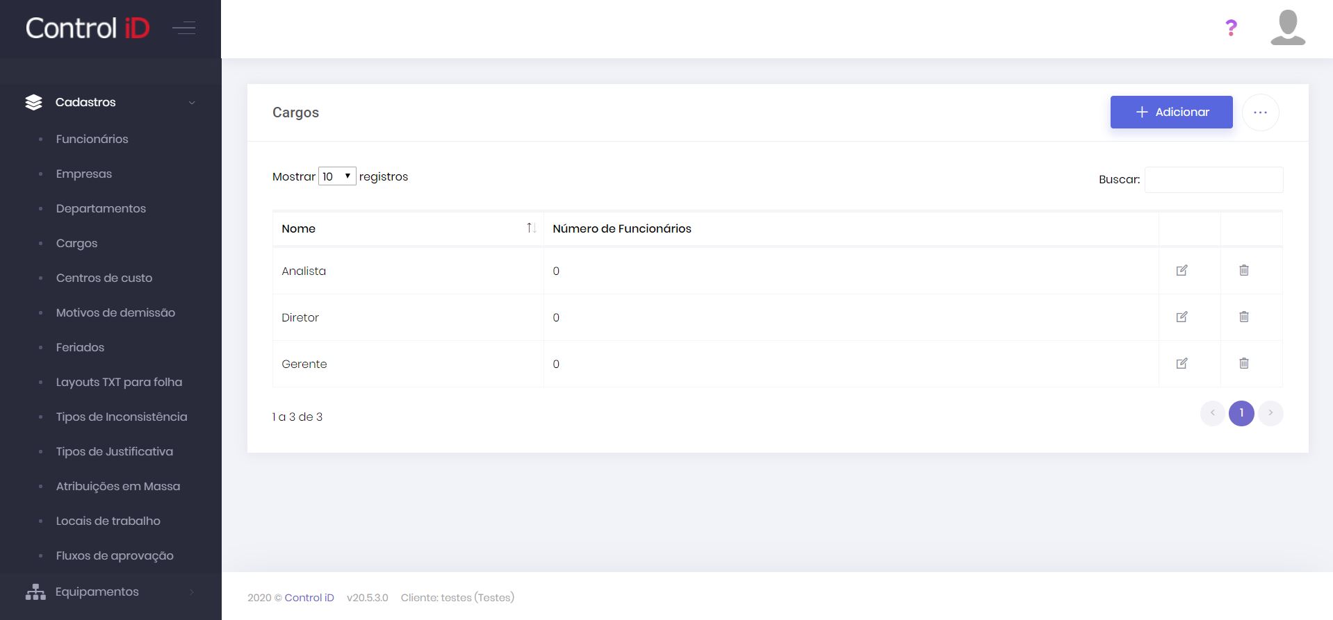 Para adicionar um cargo, deve-se clicar no botão Adicionar no canto superior da tela.